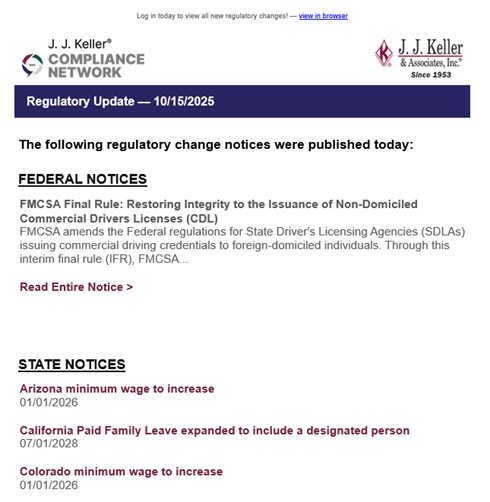 Keep up with the latest regulatory developments from OSHA, DOT, EPA, DOL, and more.