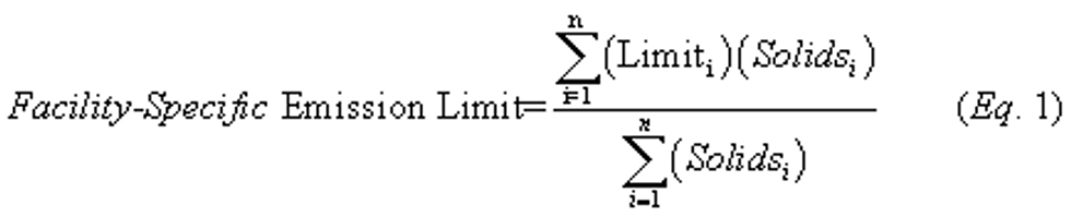 Limiti = The new source or existing source emission limit applicable to coating operation, i, included in the facility-specific emission limit, converted to kg (lb) organic HAP per kg (lb) coating solids used, if the emission limit is not already in those units. All emission limits included in the facility-specific emission limit must be in the same units.