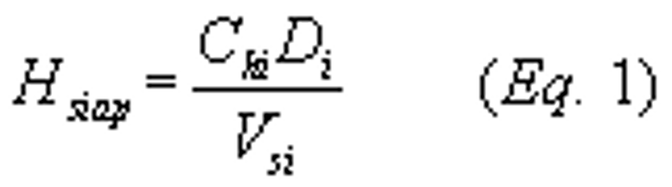 Hsiap = as-purchased, organic HAP to solids ratio of coating material, i, kg organic HAP/liter solids applied.