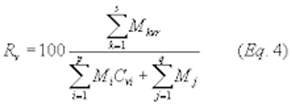 Rv = organic volatile matter collection and recovery efficiency, percent.