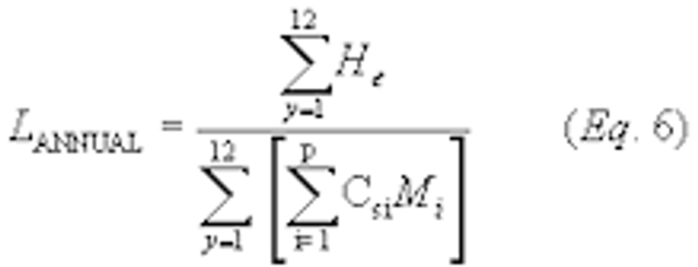 LANNUAL = mass organic HAP emitted per volume of solids applied for the 12-month compliance period, kg/liter.