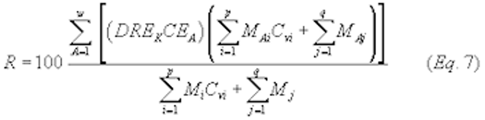 DREk = organic volatile matter destruction or removal efficiency of control device, k, percent.