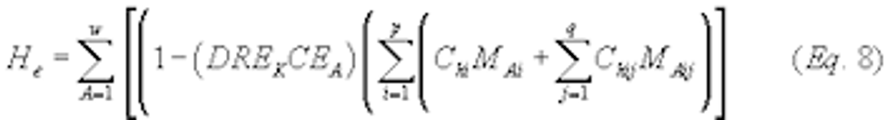 (6) Control efficiency calculation of HAP emitted. For each work station or group of work stations for which you use the provisions of paragraphs (g)(2)(ii)(B), (g)(3)(iii)(B), or (g)(4)(ii)(B) of this section, you must calculate the organic HAP emitted during the month, He, using Equation 11 of this section: