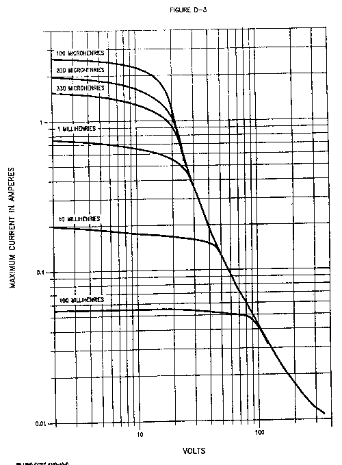 (3) The electric current through an electric contact that interrupts a circuit containing inductive components shall not be greater than that determined from Figure D-3. Inductive components include inductors, chokes, relay coils, motors, transformers, and similar electric components that have an inductance greater than 100 microhenries. No inductive component in a circuit with making and breaking electric contacts shall have an inductance value greater than 100 millihenries.