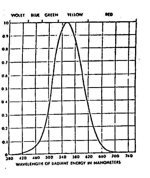 (d) Light measuring instruments shall be properly calibrated and maintained. Instruments shall be calibrated against standards traceable to the National Institute of Standards and Technology (Formerly the National Bureau of Standards) and color corrected to the Commission Internationale de l'Eclairage (CIE) Spectral Luminous Curve. The CIE Spectral Luminous Curve is as follows: