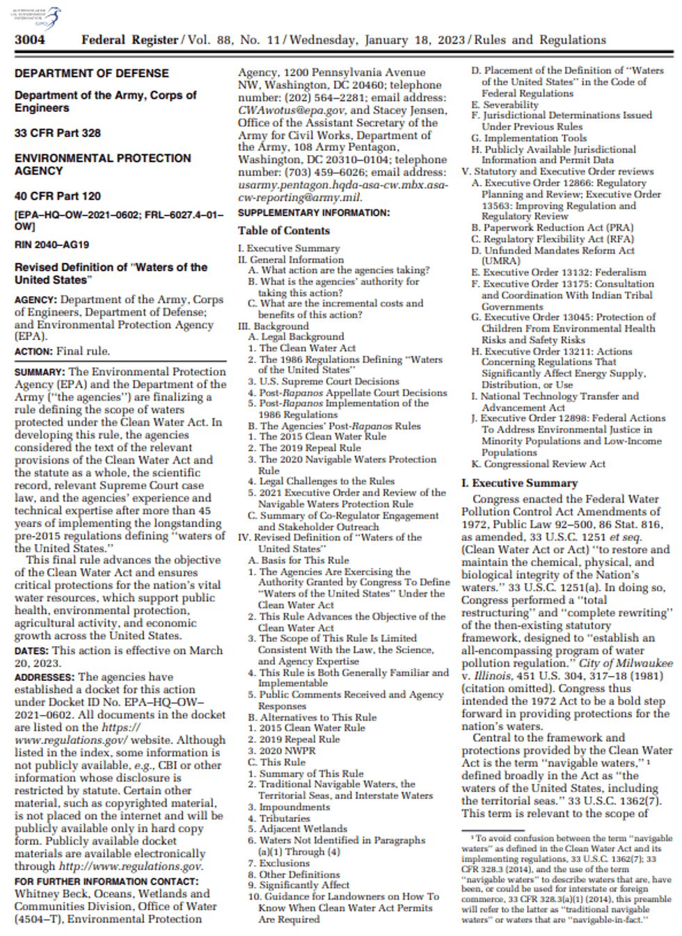 88 FR 3004 Revised Definition of ”Waters of the United States” (.pdf version) RegSenseWater ProgramsEnvironmental Protection Agency (EPA)Oil Spill PreventionRulemakingOil Spill PreventionFinal RuleWater ProgramsEnvironmentalUSAOil SpillsEnglishFocus AreaCWA Compliance