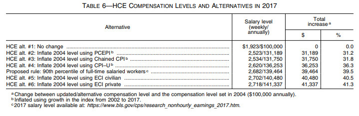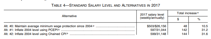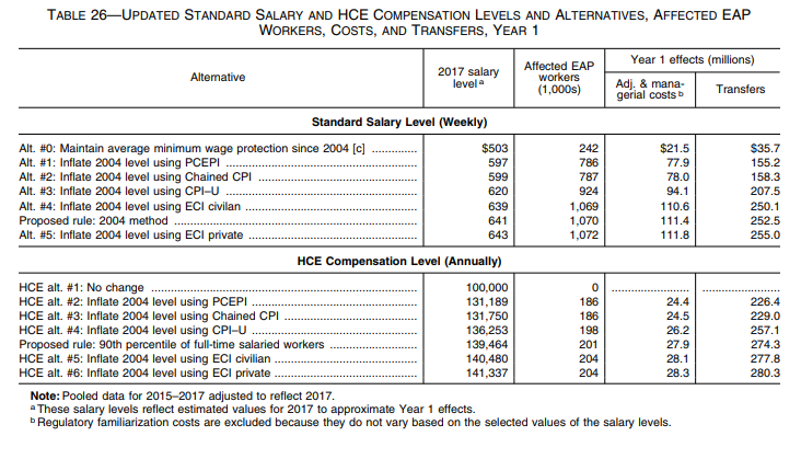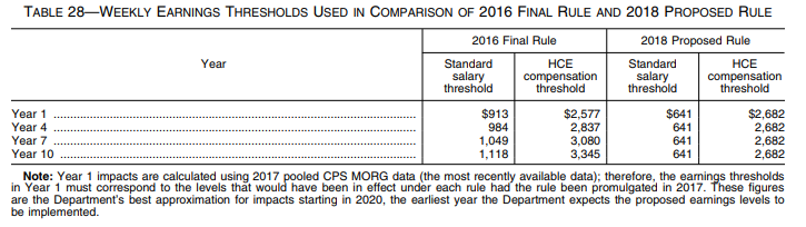 The Department increased the weekly salary level from $455 ($23,660 per year) to $913 ($47,476 per year) in a final rule published May 23, 2016 (“2016 final rule”). That rulemaking was challenged in court, and on November 22, 2016, the U.S. District Court for the Eastern District of Texas enjoined the Department from implementing and enforcing the rule. On August 31, 2017, the court granted summary judgment against the Department, invalidating the 2016 final rule. An appeal of that decision to the United States Court of Appeals for the Fifth Circuit, based on the salary threshold, is being held in abeyance. Currently, the Department is enforcing the regulations in effect on November 30, 2016, including the $455 per week standard salary level, which is the same level set in place during the 2004 final rule.