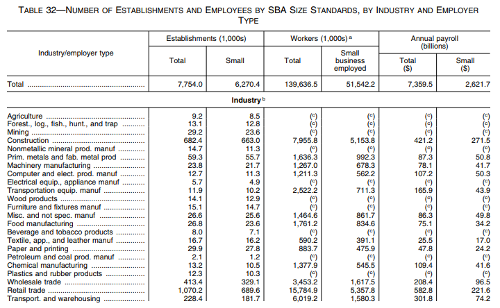 282 The ratio of revenues to payroll for small businesses ranged from 2.15 (social assistance) to 43.40 (petroleum and coal products manufacturing), with an average over all sectors of 5.35. The Department used this estimate of revenue, instead of small business revenue reported directly from the 2012 SUSB so revenue aligned with payrolls in 2017.