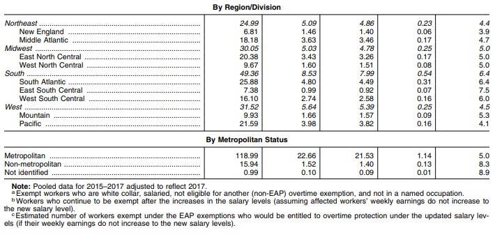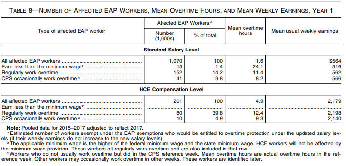 3 The Department also estimates that an additional 2.0 million white collar workers who are currently nonexempt because they do not satisfy the EAP duties tests and currently earn at least $455 per week but less than $679 per week would have their overtime-eligible status strengthened in 2020 because these employees would now fail both the salary level and duties tests.