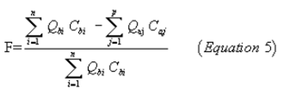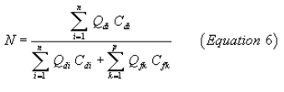(iii) The product of (F × N)(100) yields a value (R) such that the value of Eac in Equation 2 is no greater than 1.0.