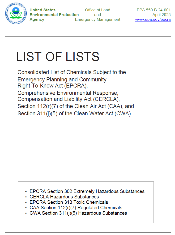 EPA 550-B-24-001 List of lists [April 2025]
