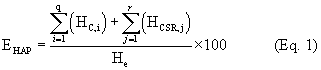 EHAP = Organic HAP overall control efficiency for the compliance period, kg organic HAP emissions reductions per kg organic HAP emissions before add-on controls during the compliance period.