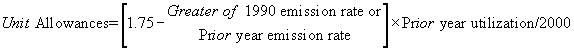 (c) Allowance allocation. The Administrator will allocate allowances to the eligible refinery upon satisfactory submittal of information under paragraphs (a) and (b) of this section in the amount calculated according to the following equations. Such allowances will be allocated to the refinery's non-unit subaccount for the calendar year in which the application is made.
