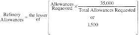 (3) If applications for a given year request, in the aggregate, more than 35,000 allowances, the Administrator will allocate allowances to each refinery in the amount equal to the lesser of 1500 or: