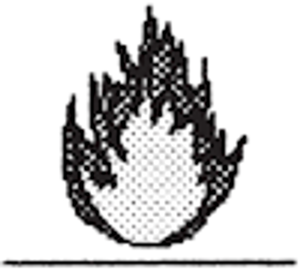 (3) A graphic symbol depicting fire, such as illustrated in this paragraph, or an equivalent symbol, must be displayed along with the required language adjoining the “Physical and Chemical Hazards” warning statement. The graphic symbol must be no smaller than twice the size of the first character of the human hazard signal word.